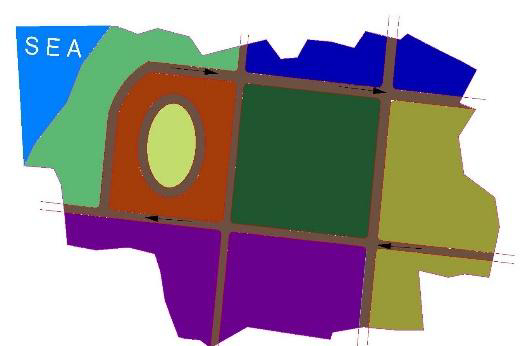 Conceptual depiction of a spatial structure framework highlighting relationships between land, movement, open spaces and the coastal edge